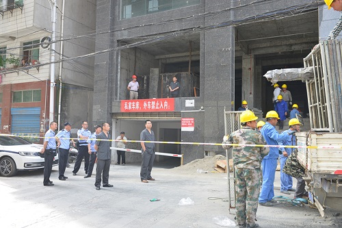 5月23日晚,房縣、茅箭法院四十余名干警來到白河縣準備開展次日執行行動。晚11時,長期不露面、不申報財產且多次拒不履行義務的被申請人黃某恰因糾紛在某派出所接受詢問。得知該消息后,執行干警迅速行動,將其攔截在派出所門口,對其依法進行拘留并連夜帶回房縣看守所,此時已經是清晨5時。5月24日早9點,房縣、茅箭及白河法院11部警車同時到達執行現場,在白河縣當地政法委、法院大力支持配合下,商鋪所在街道已由當地交警進行了交通管制,當地公安出動20名防暴警察、預留15名特警支持本次執行活動。白河縣法院也派出在院執行干警及法警20余人維持現場秩序。房縣法院分成的四個執行小組對四層商鋪進行分層清理,確保毛胚商鋪無人在場后,指揮施工人員入場圍檔安裝。茅箭法院也對其保全的營銷展示中心(售樓部)進行了騰空清場。執行干警向在現場的被執行人家屬再次釋明拒不履行法院生效法律文書確定義務的法律后果,對其進行勸誡,溝通平和,保障了場地騰空施工的順暢進行。