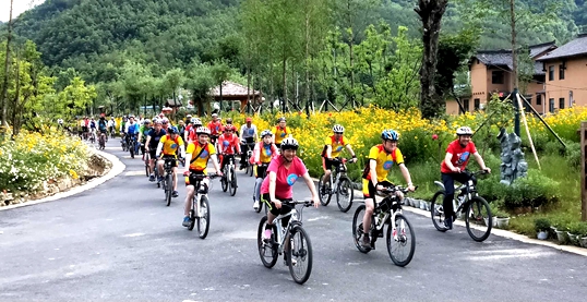 根據活動安排,參賽選手沿著花田酒溪環行旅游公路騎行6圈之后,來到花田酒溪·神農谷地國際生態康養中心入口處,舉行沖鋒大賽。參賽選手沿著1公里的騎行賽道,向位于終點的上坡沖刺。