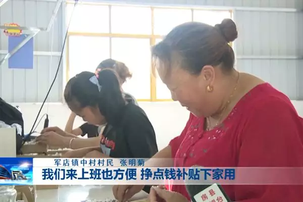 軍店鎮(zhèn)中村村民張明菊說:“我們來上班也方便,掙點錢補貼下家用,小孩也帶了,老人也照顧了。”