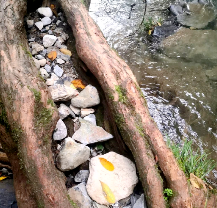 景區(qū)小道上擠滿了落葉,顯得有點(diǎn)破落,但空氣真的很新鮮,也很涼,就像山谷里的水,感覺很冰爽。
