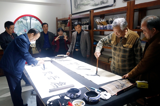 今日房縣網訊 通訊員 張立林 報道:10月21至23日,湖北荊楚文化研究會來房縣考察。考察團由特邀研究員陳昆滿帶領,研究會一行8人在房縣文聯陪同下,先后深入房縣尹吉甫鎮寶堂寺、土城黃酒民俗文化村、軍店下店子老街、觀音洞、廬陵王酒莊等地考察,聽取文化學者關于房縣楚文化繼承、挖掘、保護等方面匯報,并在房縣聽濤書畫院同房縣文化學者開展書畫筆會和研討會,交流書畫創作、開展楚文化座談。