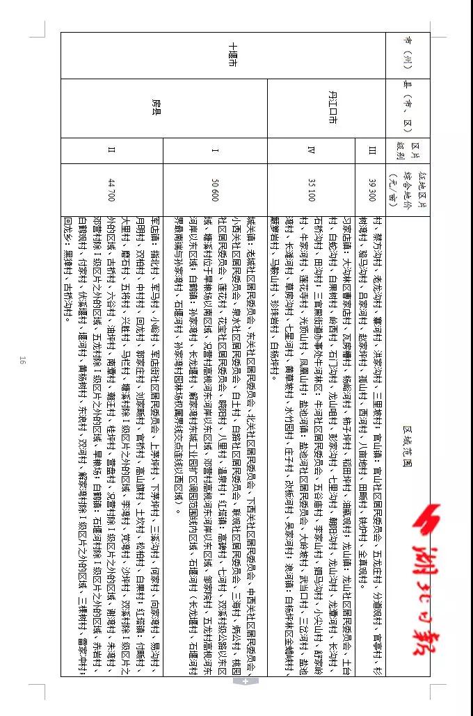 目前,省政府公布了最新的《湖北省征地區片綜合地價標準》。