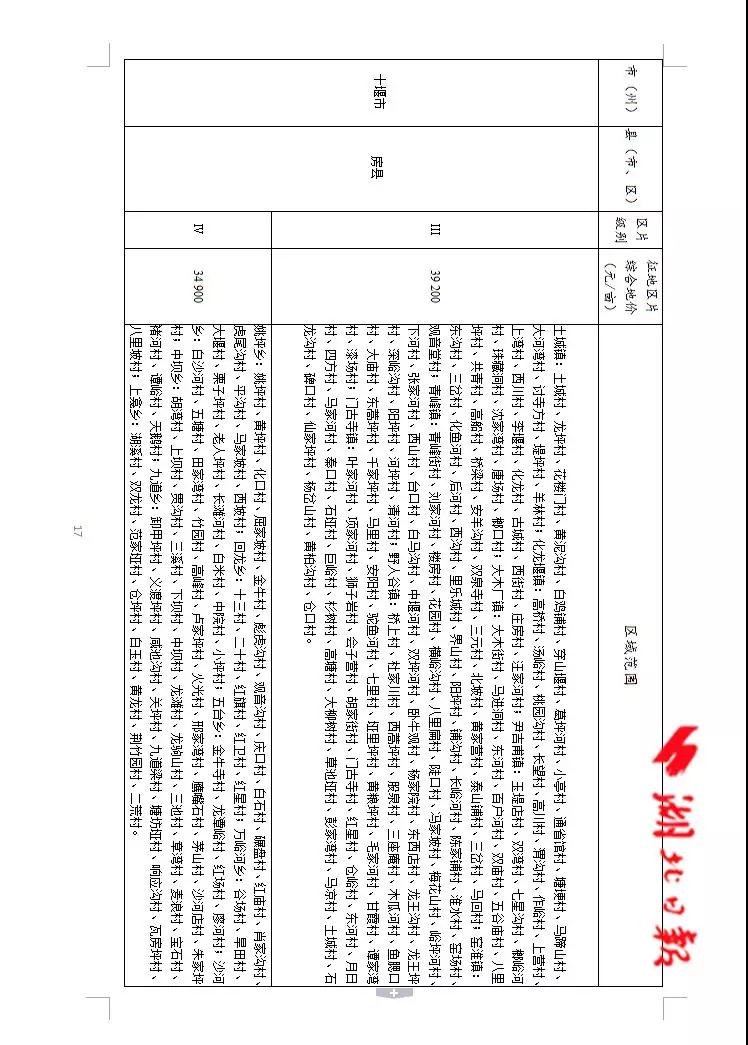 房縣地區片綜合地價標準是多少?