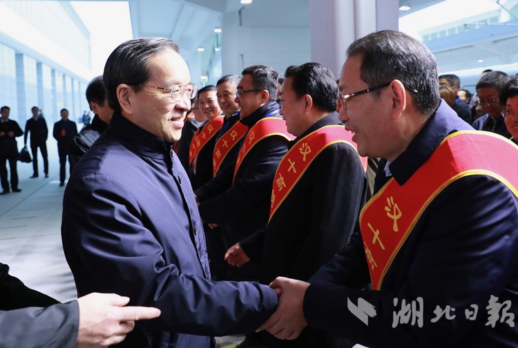 省委書記蔣超良慰問漢十高鐵建設(shè)者代表、首發(fā)列車車組人員(湖北日?qǐng)?bào)全媒記者 陳跡 攝)