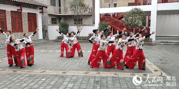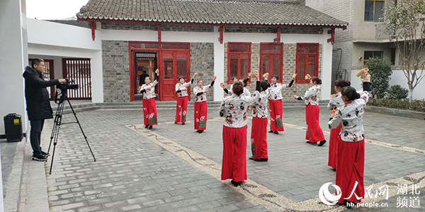圖為:房縣軍店鎮(zhèn)社區(qū)居民節(jié)目《人情歪風討人厭》表演唱。