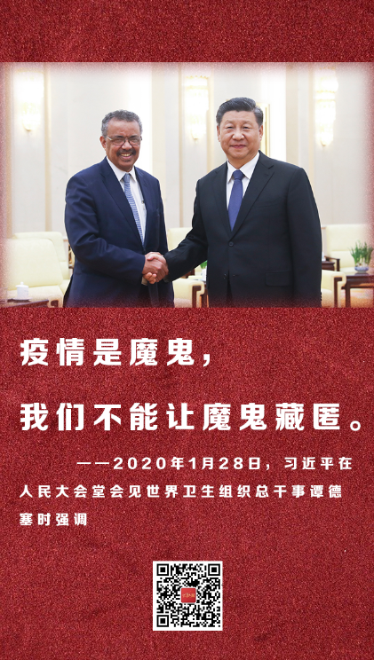 ——2020年1月28日,習(xí)近平在人民大會(huì)堂會(huì)見世界衛(wèi)生組織總干事譚德塞時(shí)強(qiáng)調(diào)