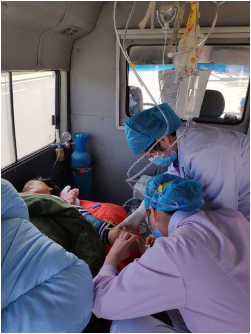 縣婦幼保健院醫務人員趕到后,對產婦進行對癥處理并成功剝離胎盤,出血情況初步控制,并迅速轉運。在市縣多級聯動下,13時許,房縣、竹山縣保健院在官渡鎮會合,急救人員同時參與對孕產婦救治,并安排人員抽取血液提前回院做輸血準備。