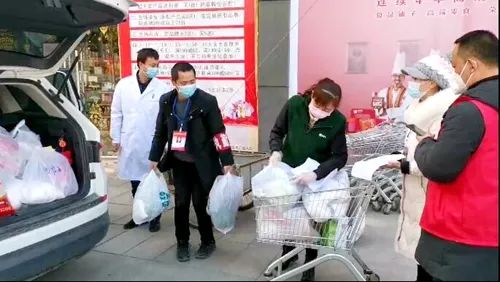 ”2月19日上午,城關鎮老城社區網格員張文和他的同事們手提青菜、面條、衛生紙等生活物資,按照“訂單”上的地址送到社區居民家門口,讓群眾安心“宅”在家中。