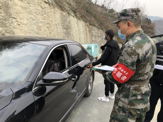 今日房縣網(wǎng)訊? 通訊員? 許諾君? 報(bào)道:沒(méi)有警服、沒(méi)有防護(hù)服,只有一身迷彩服;沒(méi)有執(zhí)法證,沒(méi)有上崗證,只有一張軍人退伍證;在這場(chǎng)防控“戰(zhàn)疫”中,姚坪鄉(xiāng)慶口村有這樣一位年輕人,疫情來(lái)臨之時(shí),他再次“入伍”了。