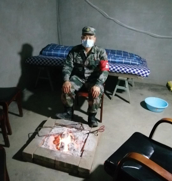 2月25日深夜,氣溫驟降,一場(chǎng)風(fēng)雨席卷而來(lái),杜達(dá)輝與村書(shū)記依然堅(jiān)守在一線值勤,他毫無(wú)怨言。杜達(dá)輝說(shuō):“這些事總有人要做,也是為了退役的時(shí)候說(shuō)的那句誓言‘若有戰(zhàn),召必回’我要有責(zé)任擔(dān)當(dāng),在國(guó)家需要的時(shí)候,做一些有意義的事情。”