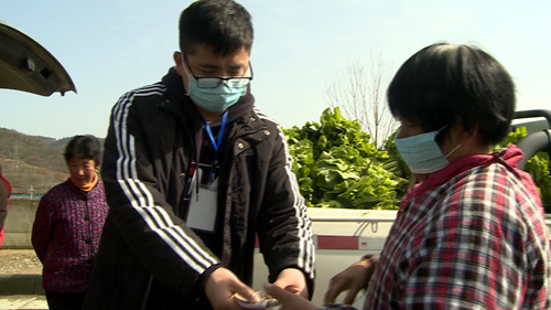 “這些菜一起是60斤,六八四十八,一共是四十八塊錢。你收好。”記者10號見到張駿熙的時候,他正在紅塔鎮黨灣、李灣一帶收購當地群眾自產的新鮮白菜菜苔。近一段時間,他和另外幾名志愿者一起,自發來到城郊的村莊,自費購買。