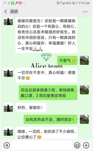 2月14日是西方人的情人節,在縣醫院感染科隔離病區工作的廣西老俵蒙宏發脫掉防護服,摘下護目鏡,換上白大褂,就接到妻子的手機視頻電話。透過手機,看著鏡頭里已經熟睡的一雙兒女,面容憔悴的妻子,簡單的寒暄幾句就按下結束鍵。近在咫尺卻好似遠隔天涯,轉過身這個鐵打的壯鄉漢子終于忍不住內心的酸楚,留下了眼淚。2月14日(正月二十一)是情人節,同時也是他的生日,沒有鮮花,沒有蛋糕,妻子祝福的話語還沒有來的及說就被他匆匆結束。他知道作為一個男人他要有所擔當,作為醫者他肩負使命,只有堅強才能給家人信心,只有堅守才能取得勝利。