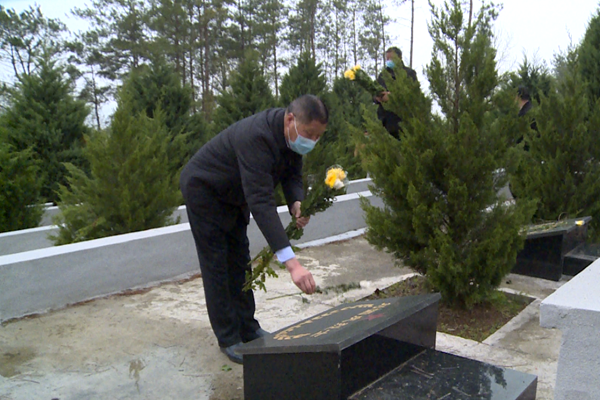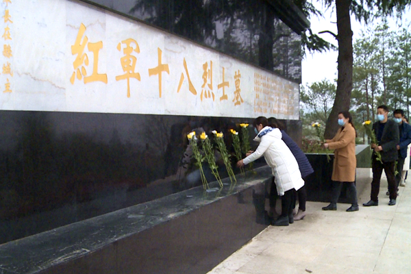 隨后,縣退役軍人事務局志愿者來到鳳凰山烈士陵園,依次向十八烈士墓、雷天明烈士墓和零散烈士墓獻花,表達對革命烈士們的敬意。
