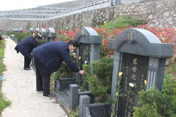 縣縣民政局和殯儀館志愿者來到鳳凰山公墓,將菊花輕放在一座座墓前,代替家屬表達追思之情。