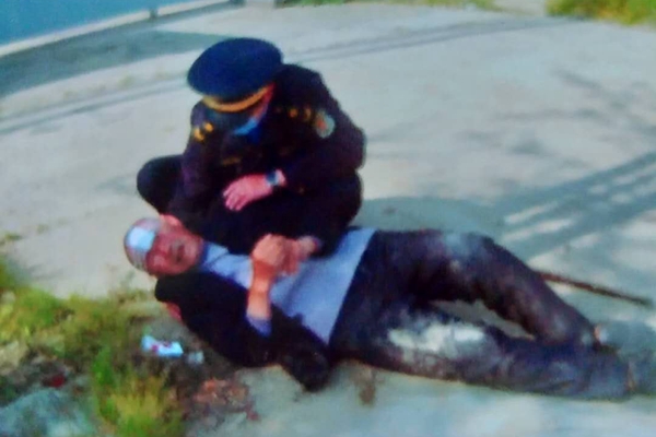 4月9日上午9時許,縣城管執法局執法大隊二中隊中隊長葉圣陶一行正在例行巡查途中,發現一位老人摔倒在地,地上的一小灘血跡已經凝固,手腳不停抽搐,情況十分危急。見此情形,城管隊員上前將老人摟抱在懷中,火速撥打了120急救電話。城管隊員見老人頭部出血不止,立即到附近診所請到醫生,購買了繃帶和消毒藥水,為老人進行了簡易的包扎止血。