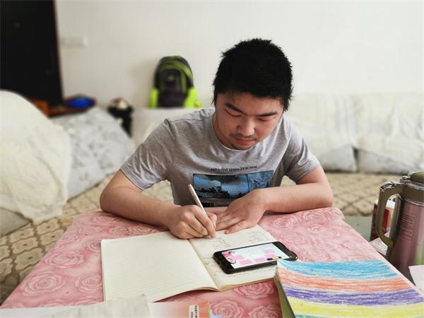 2018年秋,張鑫鑫以優異的成績考入房縣一中。為方便學習,學校應張鑫鑫母子要求,在男生宿舍為其單獨安排一間寢室,安頓了一個簡陋的家。從此,無論酷暑還是寒冬,人們總能在校園看見他坐在舊三輪車上匆匆前行的身影,總能在教室看見他求知若渴、埋頭苦讀、奮筆疾書的身姿。因為行動不便,他在學校從不喝水,哪怕有同學搶著幫他拿水杯、爭著扶他上廁所,他也總是笑著搖頭謝絕。不僅如此,他還在力所能及的情況下為同學提供幫助。