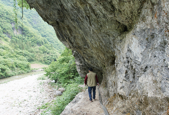 九道鄉文化站干部程知金介紹,洞水坪距此約17公里,曾居住著幾百名村民。“聽老人們講,洞水坪的藥材、毛皮等物資,都通過陰峪河運到堵河,進入漢江后再運到老河口、漢口等地……”那時候,交通的問題一直困擾著一代代山民,每逢連日降雨、山洪暴發,河邊的小路被淹沒后,涉水過河就十分危險。