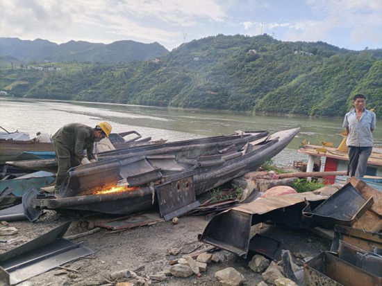 今日房縣網訊? 記者 李平 通訊員 鄭舒鑫? 馮磊? 報道:7月26日,房縣姚坪鄉正在切割銷毀漁船。該鄉地處堵河流域、黃龍灘庫區腹地,自我市發布重關于全市點水域實施禁捕通告后,該鄉272名漁民主動上交自己的漁船,禁漁退捕。與此同時,按照省市縣退捕政策,漁民均拿到了補貼。堵河自此再無漁船。