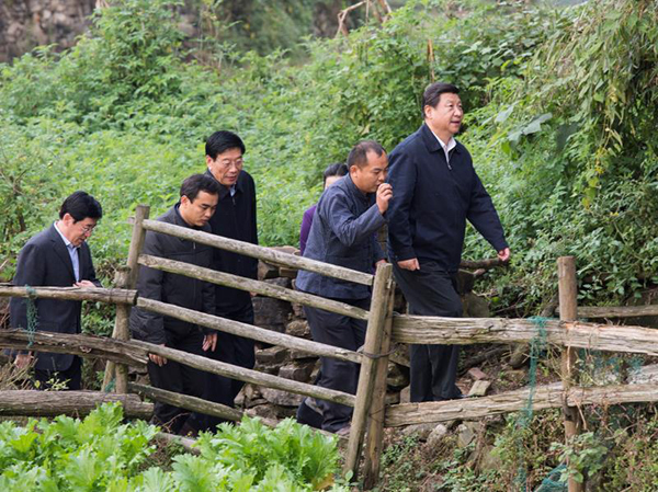2013年11月3日下午,習近平在湘西土家族苗族自治州花垣縣排碧鄉(xiāng)十八洞村看望鄉(xiāng)親,調研扶貧開發(fā)工作。新華社記者王曄攝