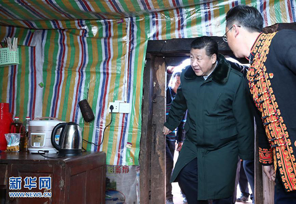 2018年2月11日上午,習近平在涼山彝族自治州昭覺縣三岔河鄉(xiāng)三河村貧困戶節(jié)列俄阿木家中看望。 新華社記者 鞠鵬 攝
