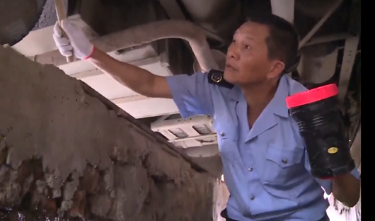 50多歲的陸忠天是房縣客運站的一名老檢車員,每天上午八點到十點,是他最繁忙的?時間,因為每一輛客運車輛只有經過他的“體檢”,方可放行,雖然繁忙,但陸師傅?工作起來卻一絲不茍,憑借著30多年的車檢經驗,任何安全隱患都逃不出他的火眼金睛。下午兩點多,也是一個客車發班的高峰期,也正是一天中氣溫最高的時候,陸師傅一?方面要接受地溝高溫的炙烤,還要接受客車發動機和排氣管高溫的烘烤,雖然人就像?放置在烤箱中,但檢查轉向、輪胎、剎車等各項工作,陸師傅一個環節也不減少,一?輛車檢查下來,他已是滿頭大汗,如果遇到忙碌的時候,工作服全部汗濕。
