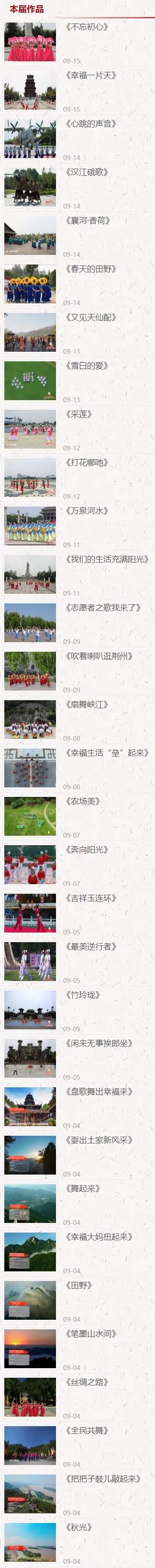 9月16日起,由中共湖北省委宣傳部、湖北省文化和旅游廳、湖北省衛生健康委、湖北省體育局、湖北廣播電視臺主辦,湖北省群眾藝術館、湖北衛視承辦的“文化力量·民間精彩”全省第五屆群眾廣場舞云展演網絡投票通道正式開啟。