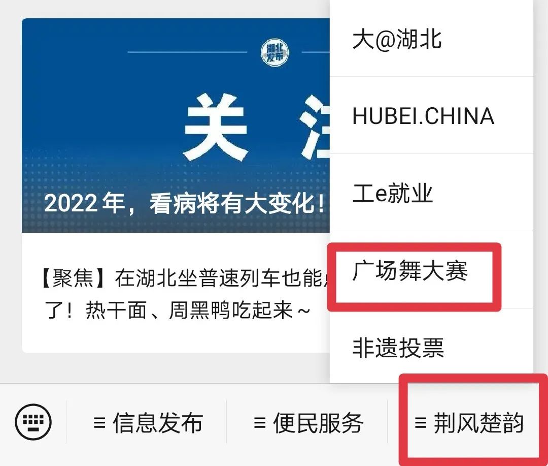 方法一:點擊下方二維碼關注“湖北發布”,點擊菜單欄“荊風楚韻”-“廣場舞大賽”進行投票。