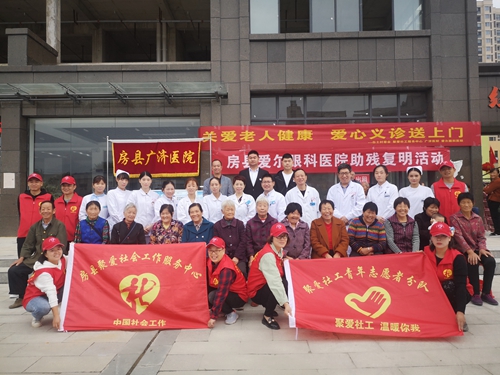 今日房縣網訊 ?通訊員徐婷婷??報道:中秋節和國慶節“雙節”來臨之際,9月28日上午,房縣聚愛社會工作服務中心攜手房縣廣濟醫院、房縣愛爾眼科醫院,在詩經小鎮小區順利開展“關愛老人健康·愛心義診送上門”主題活動,為126名老人開展了義診。