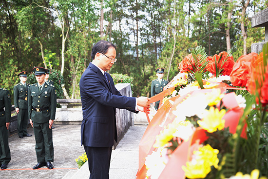 縣領(lǐng)導(dǎo)、社會(huì)各界代表和學(xué)生代表等各方陣按順序依次獻(xiàn)花并瞻仰了烈士紀(jì)念碑,寄托對(duì)革命先烈的無(wú)限哀思,頌揚(yáng)革命先烈的崇高精神。隨后,縣領(lǐng)導(dǎo)和駐房軍警、部隊(duì)官兵分別到零散烈士墓前敬獻(xiàn)了鮮花。