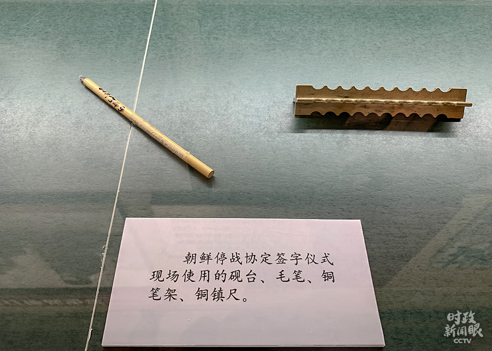 △朝鮮停戰(zhàn)協(xié)定簽字儀式現(xiàn)場使用的文具(總臺央視記者石丞拍攝)