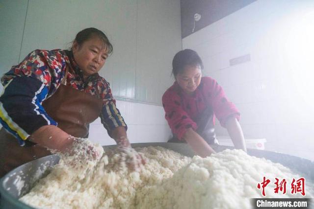 圖為土城村村民正在釀制黃酒 劉建維 攝
