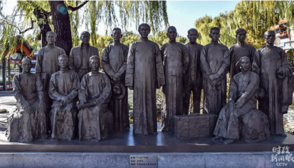 △中央黨校校園內(nèi)名為“一大代表”的主題雕塑