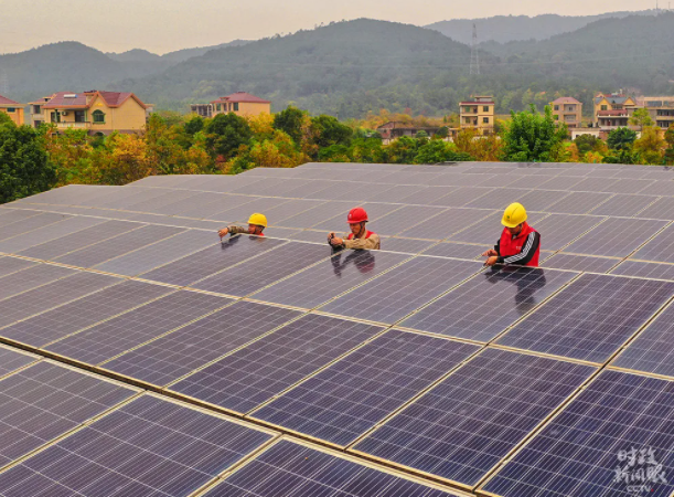 △江西吉安黃崗村,供電公司工人正在檢修“光伏+取暖”設(shè)備,保障村民溫暖過冬。