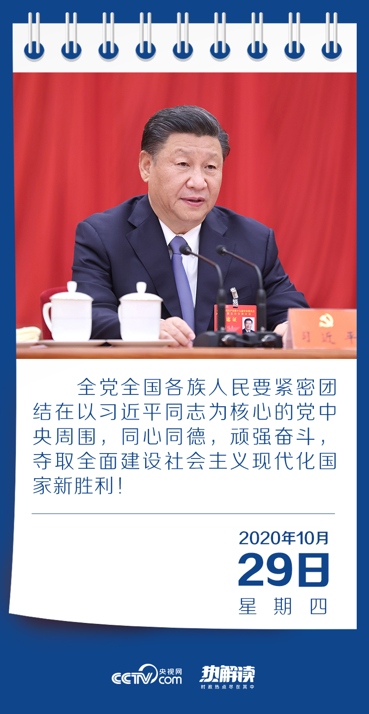 10月29日,中國共產(chǎn)黨第十九屆中央委員會第五次全體會議在金色的秋天里勝利閉幕。全會由中央政治局主持。中央委員會總書記習(xí)近平作了重要講話。