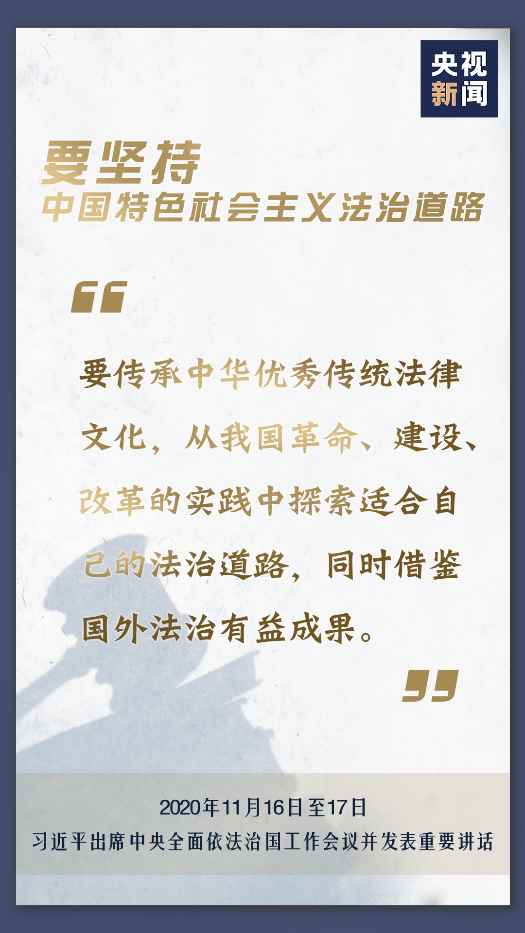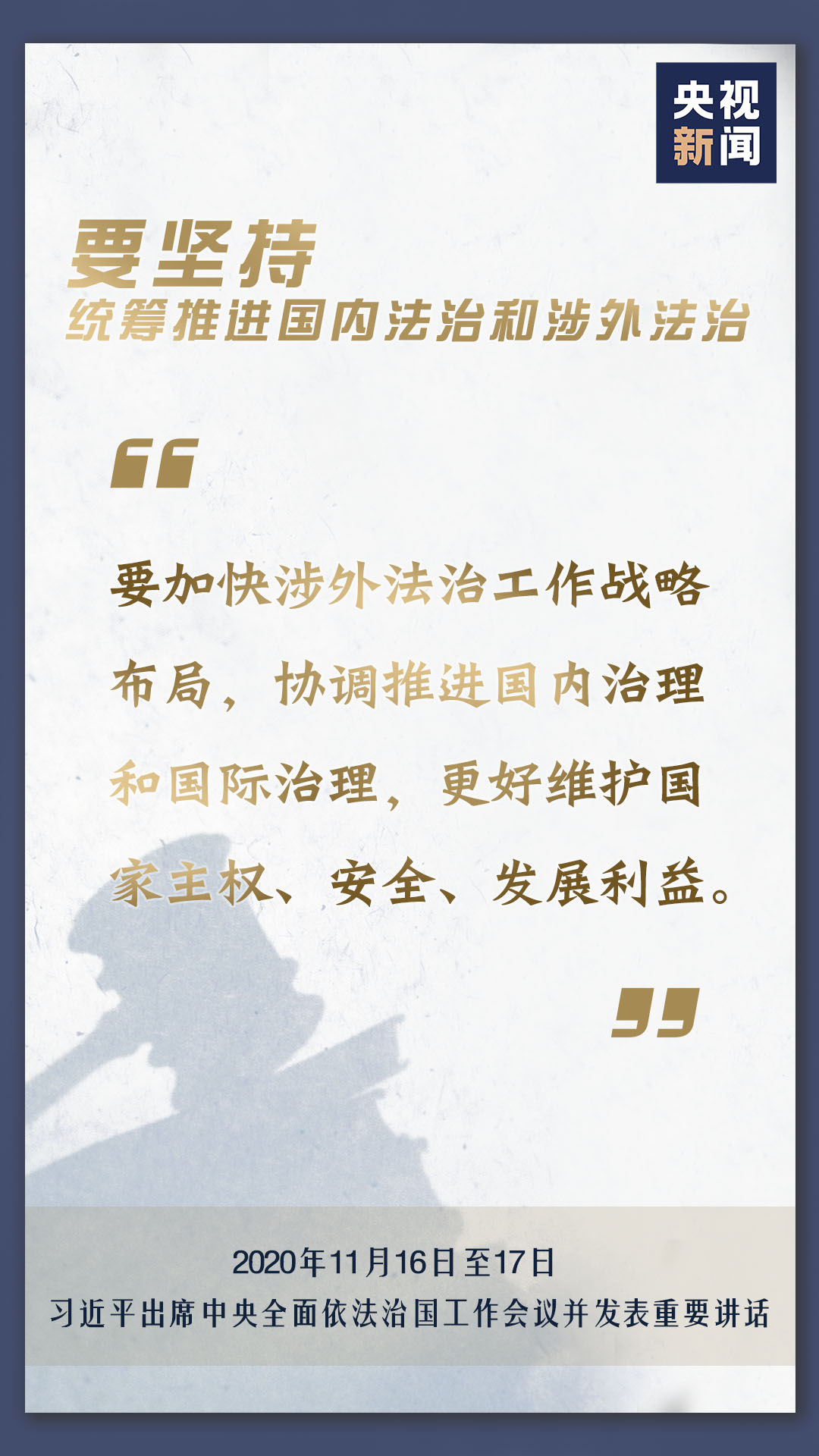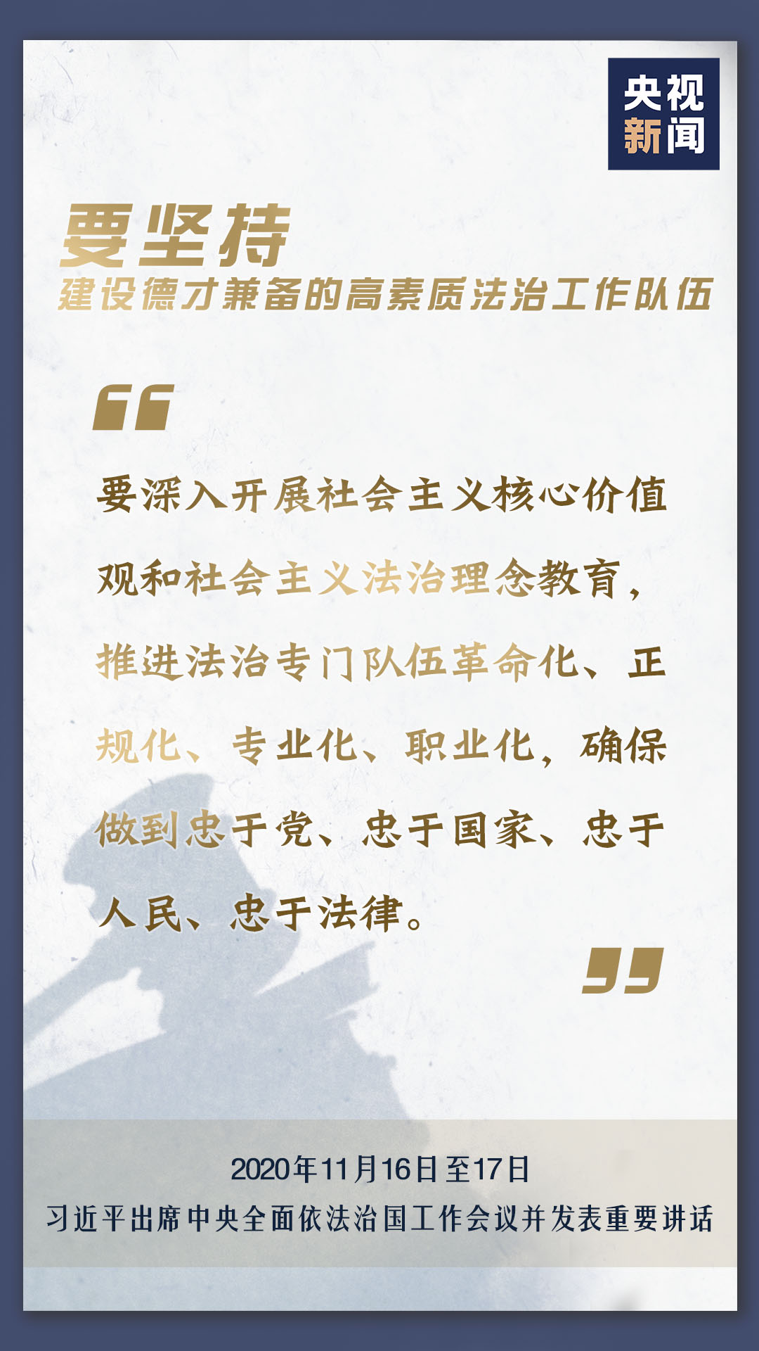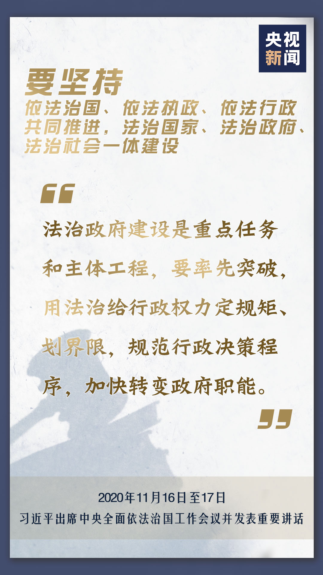 中央全面依法治國工作會議11月16日至17日在北京召開,中共中央總書記、國家主席、中央軍委主席習(xí)近平出席會議并發(fā)表重要講話。會上,習(xí)近平對當(dāng)前和今后一個時期推進(jìn)全面依法治國要重點抓好的工作提出了11個方面的要求。