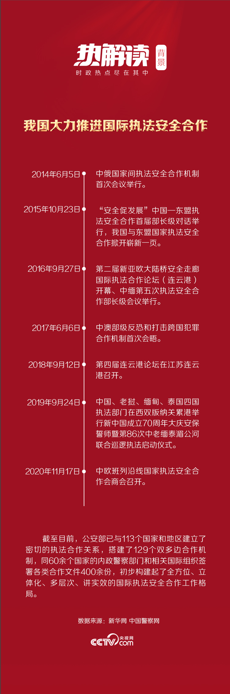 黨的十八大特別是黨的十九大以來(lái),我國(guó)公安機(jī)關(guān)不斷拓展國(guó)際執(zhí)法合作的廣度和深度。中俄國(guó)家間執(zhí)法安全合作機(jī)制、中越打擊犯罪合作部長(zhǎng)級(jí)會(huì)晤、中緬執(zhí)法安全合作部長(zhǎng)級(jí)會(huì)晤、中馬公安內(nèi)政部門聯(lián)合工作組會(huì)議、中印公安內(nèi)政高級(jí)別安全與反恐會(huì)晤、中德公安內(nèi)政部門副部級(jí)年度會(huì)晤……國(guó)際執(zhí)法安全合作結(jié)出累累碩果。