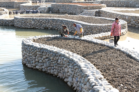 今日新聞網訊 通訊員?張啟龍?唐雪松 報道:2020年12月20日,施工人員在“中國傳統村落”房縣馬欄河軍店下店子村老街段建設生態景觀水利工程。