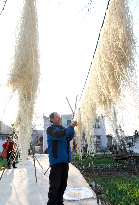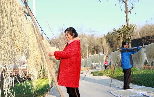 今日房縣網訊 通訊員?唐雪松? 報道:2020年12月27日,房縣化龍堰鎮高橋村農民何新積夫妻倆在晾曬紅薯粉條。該縣采取“小額信貸扶持+技術培訓+農超對接”的方式,引導農民對地產紅薯進行深加工,生產紅薯粉條,增加農戶收入。目前,當地軍店、大木廠、白鶴、紅塔等鄉鎮生產的紅薯粉條實現農超對接,紅薯粉條成了農民致富的“金條”。