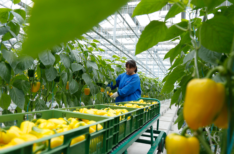 △2020年12月11日,在河北省邢臺(tái)市南和區(qū)賈宋鎮(zhèn),農(nóng)民在采摘彩椒。