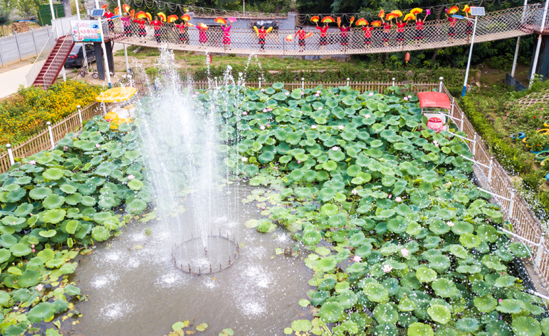 △2020年7月14日,河北省饒陽(yáng)縣王同岳鎮(zhèn)王同岳村村民在廢棄坑塘改造的小花園內(nèi)排練節(jié)目。