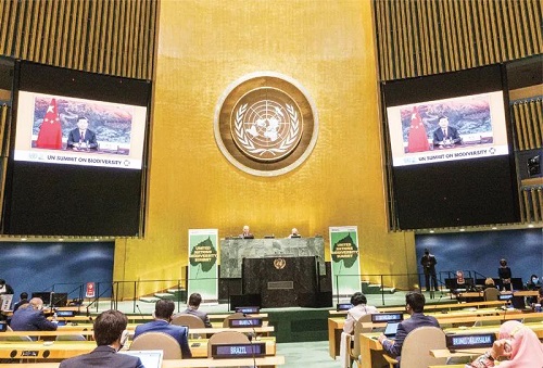 2020年9月30日,國(guó)家主席習(xí)近平在聯(lián)合國(guó)生物多樣性峰會(huì)上通過(guò)視頻發(fā)表重要講話。(新華社發(fā))