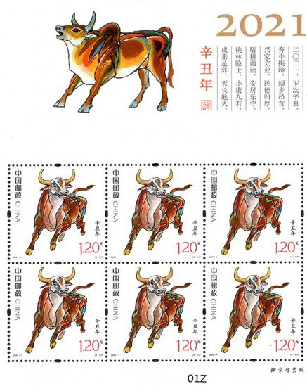 秦楚網訊?記者 曾雨 通訊員 王嫣?報道:1月5日,中國郵政將發行《辛丑年》特種郵票一套2枚,郵票圖案名稱分別為:奮發圖強、牛年大吉,***郵票面值為2.40元。集郵愛好者可通過全國指定郵政網點購買。