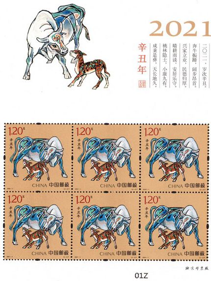 《辛丑年》特種郵票的設計延續了第四輪生肖郵票的“家國”理念,由著名畫家姚鐘華先生創作,通過動與靜、力量與溫情的結合,將生肖牛“腳踏實地、敢于拼搏、開拓進取、勤勞奉獻”的精神內涵進行了生動詮釋與藝術展現。