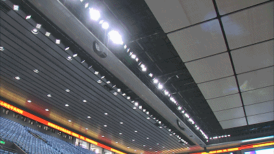 △首都體育館采用最新的聲光電技術(shù),打造“最美的冰”。在場地四角分別布設(shè)激光投影儀,將絢麗燈光投影至場館頂部巨型屏幕。當花滑運動員在冰面舞動時,仿佛置身夢境。