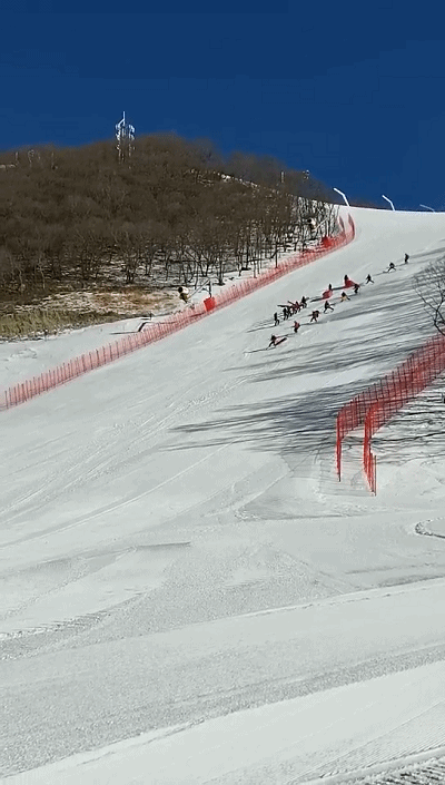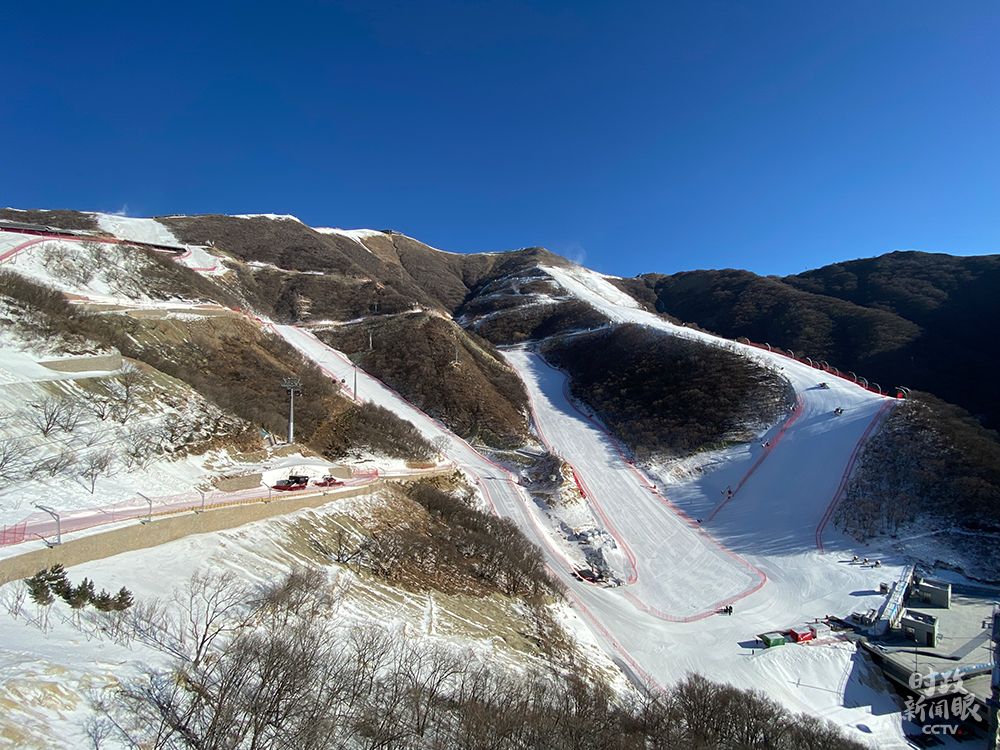 △國家高山滑雪中心的雪道系統(tǒng)共設(shè)7條雪道,3條用于競賽,4條作為訓練,總長9.2公里,其中滑降賽道落差近900米。(總臺央視記者楊立峰拍攝)