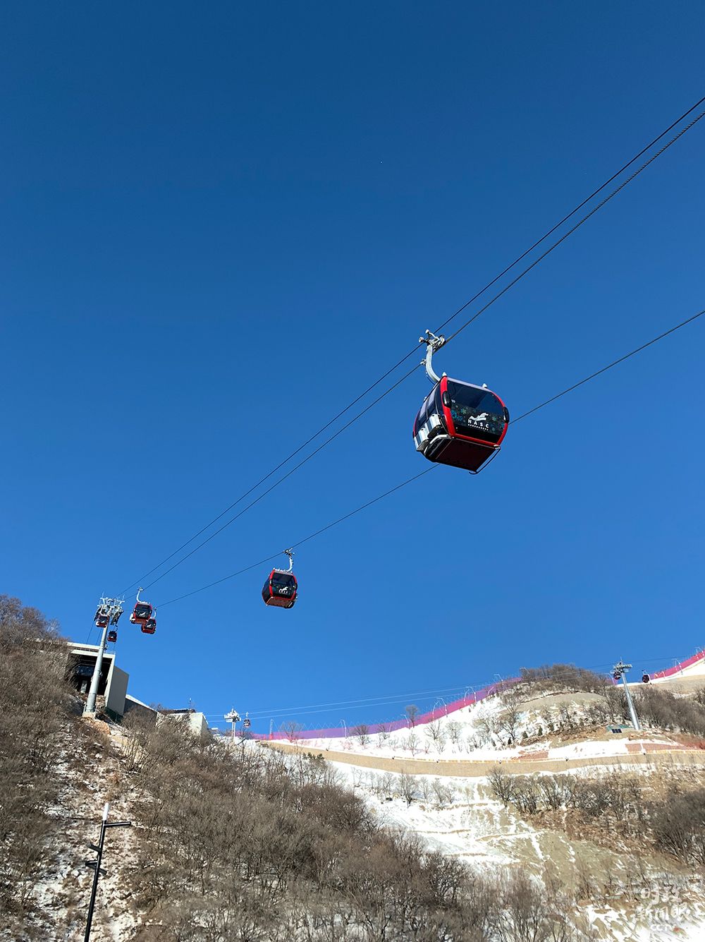 △索道系統(tǒng)由9條索道及2條牽引組成,全長10.3公里,賽時可確保運動員30分鐘內(nèi)從冬奧村抵達各項目出發(fā)點。(總臺國廣記者李晉、央視記者石丞拍攝)