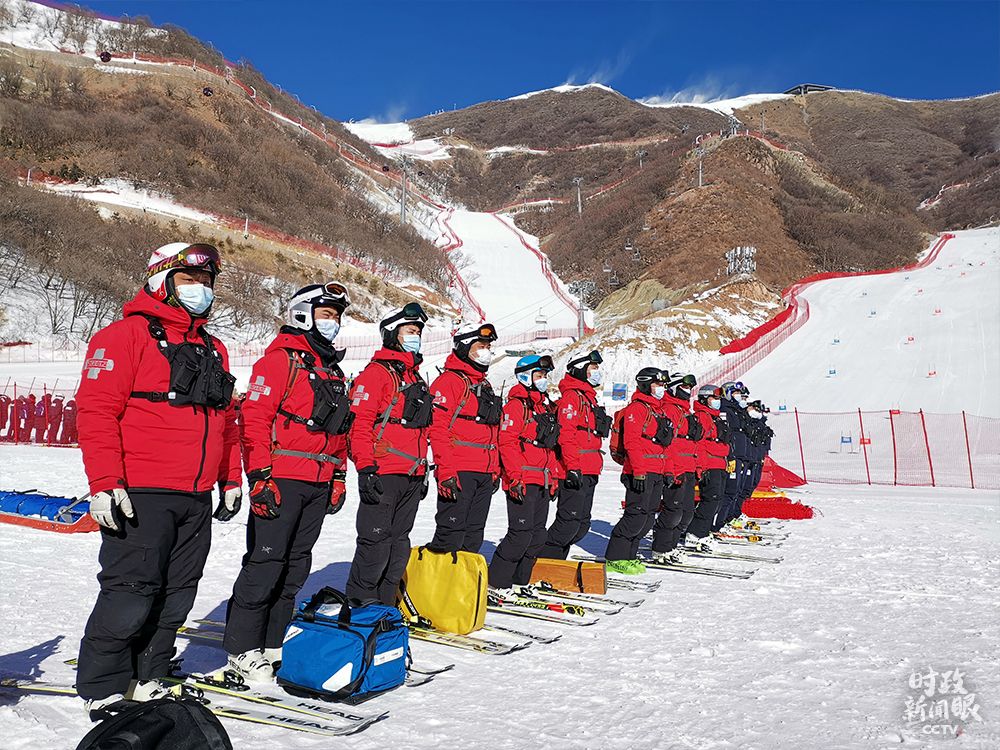 △國家高山滑雪中心救援隊正在演練。(總臺央視記者楊立峰、國廣記者李晉拍攝)