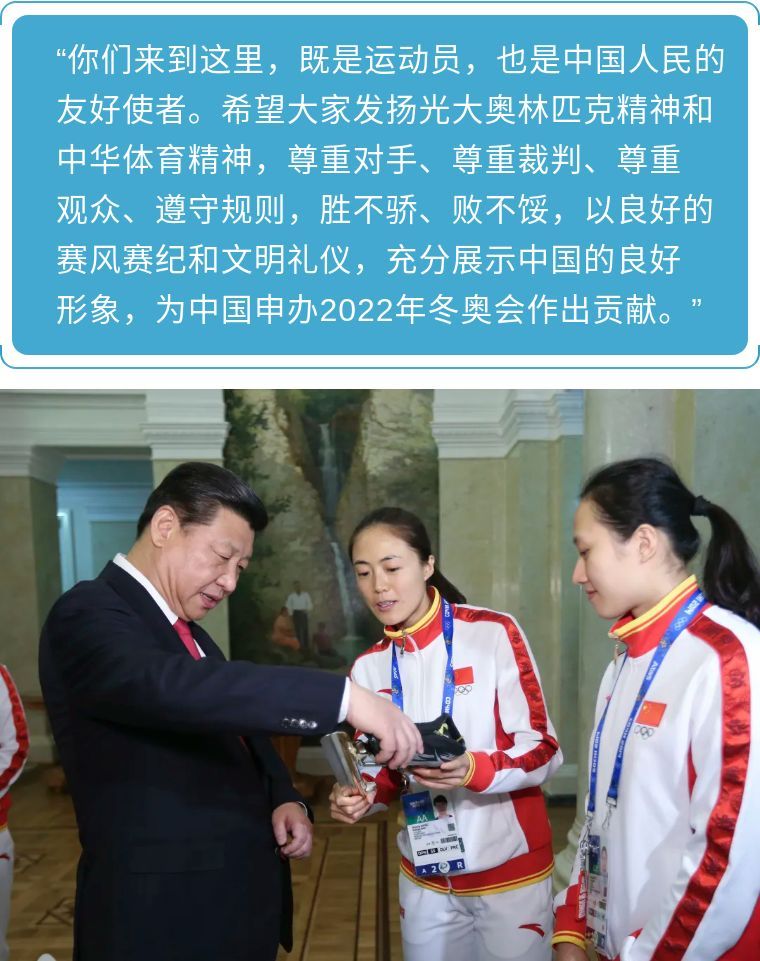↑2014年2月7日,中共中央總書(shū)記、國(guó)家主席、中央軍委主席習(xí)近平在俄羅斯索契親切看望參加第二十二屆冬季奧林匹克運(yùn)動(dòng)會(huì)的中國(guó)體育代表團(tuán)。這是運(yùn)動(dòng)員向習(xí)近平介紹冰雪運(yùn)動(dòng)器材。新華社記者 蘭紅光 攝