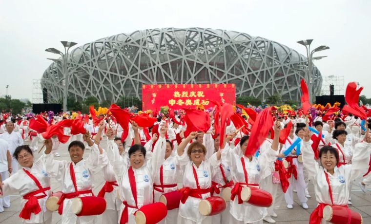↑2015年7月31日,市民在北京國(guó)家體育場(chǎng)“鳥(niǎo)巢”前慶祝北京攜手張家口獲得2022年冬奧會(huì)舉辦權(quán)。新華社記者謝環(huán)馳攝