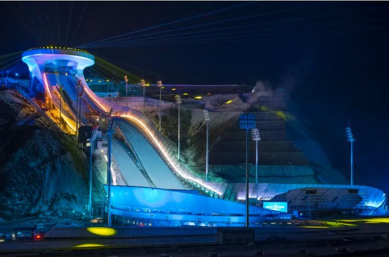 ↑位于河北省張家口市崇禮區(qū)的國(guó)家跳臺(tái)滑雪中心別名“雪如意”,是北京冬奧會(huì)的主要比賽場(chǎng)館之一。主體建筑靈感來(lái)自中國(guó)傳統(tǒng)飾物“如意”,實(shí)現(xiàn)了建筑設(shè)計(jì)和中國(guó)傳統(tǒng)文化的有機(jī)結(jié)合,也是2022年北京冬奧會(huì)張家口賽區(qū)工程量最大、技術(shù)難度最高的競(jìng)賽場(chǎng)館。這是“雪如意”夜間燈光點(diǎn)亮效果(無(wú)人機(jī)照片,2020年12月19日攝)。新華社發(fā)